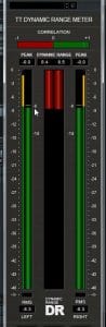 1- Posez un limiteur sur le master, augmentez le volume pour atteindre DR8, C’est-à-dire, une valeur RMS (root mean square) de -8 dB. La valeur RMS nous indique la quantité d’énergie sonore déployée par le mix. Pour savoir que j’arrive bien à cette valeur, j’utilise TT Dynamic Range Meter (ci-bas), un plugin très précis et gratuit, mais maintenant difficile à trouver. (J’ai une vieille version dans mon Dropbox, avis aux intéressés)