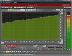 Pour les utilisateurs de Logic ou Cubase (VST), je vous suggère de télécharger Voxengo SPAN, gratuitement. Pour avoir une lecture juste des RMS vous devez ajuster à DBFS+3 (en bas à droite)